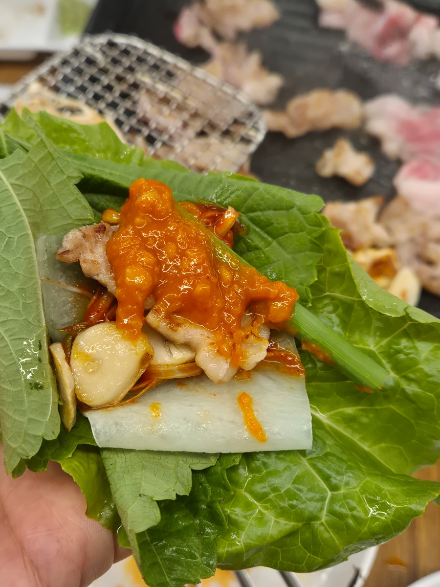 삼겹은 역시 쌈을 싸서 먹어야지