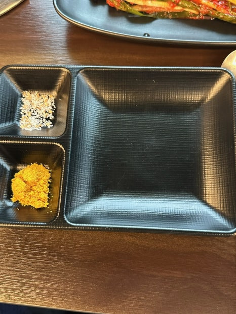 쌈채소들과 파절이 와사비 소금 카레소스 담백하고 고소한 맛을 냄