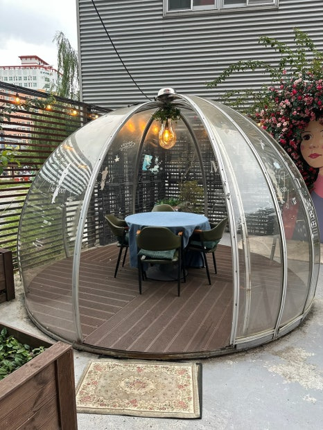 날씨가 좋은 날에는 외부에 캡슐같은 공간에서 이용가능합니다.