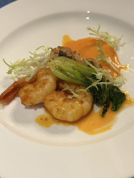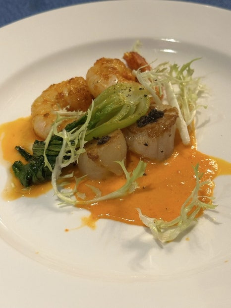 수비드로 조리한 가리비와 새우가 탱글하며 진한 비스크 소스가