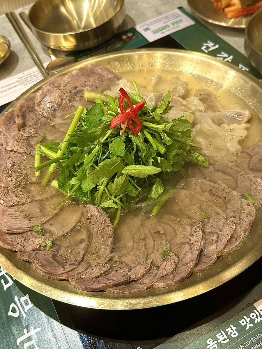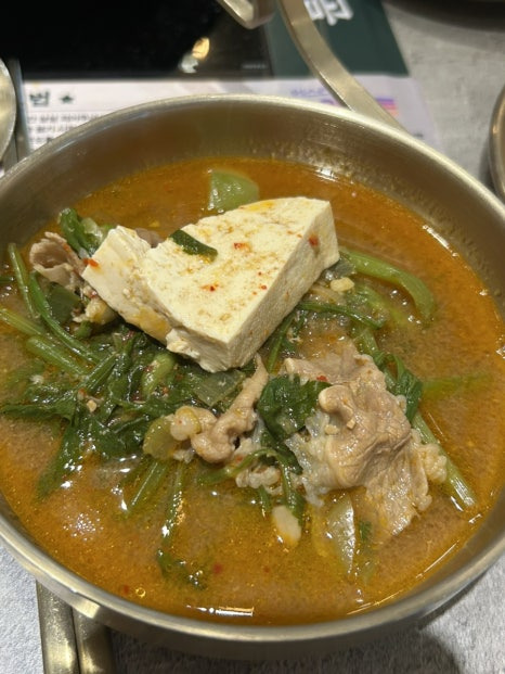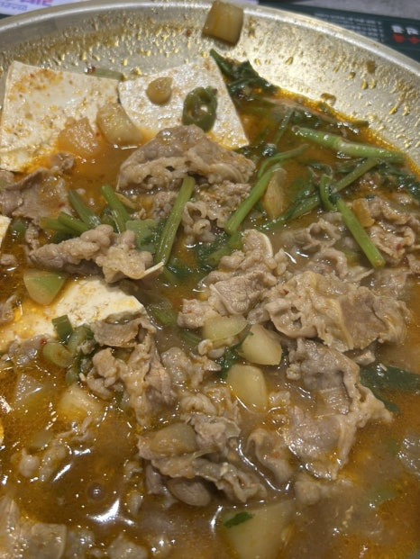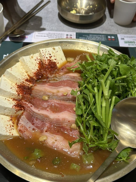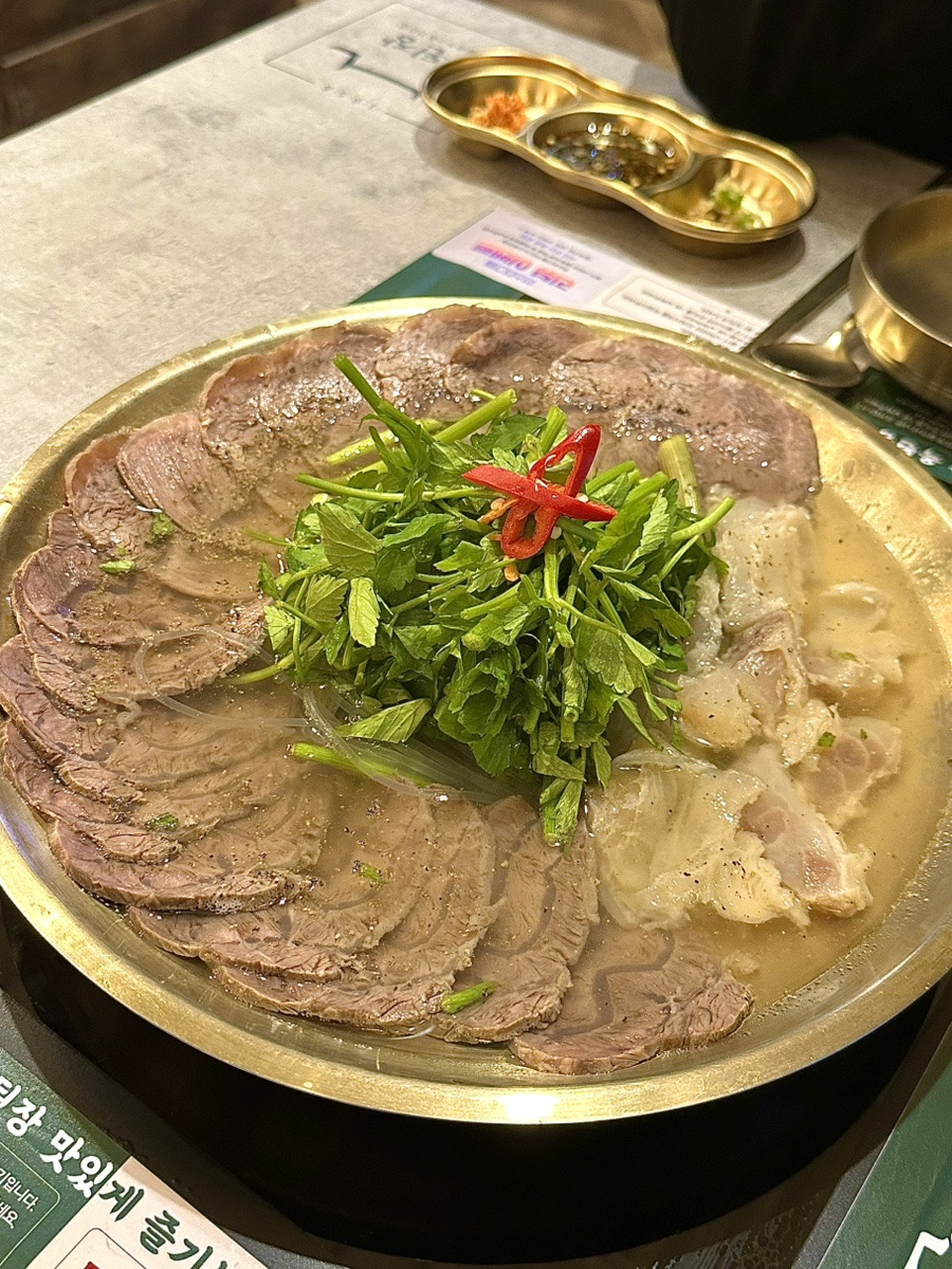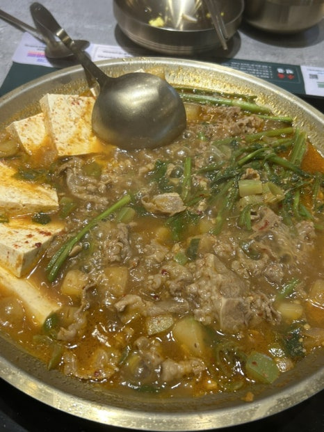 삼겹살과 소고기가 어우러진 이 메뉴는 국물부터 깊은 맛!