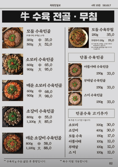 수육전골 소꼬리 , 소갈비 , 아롱사태 부채살 스지까지 다양함