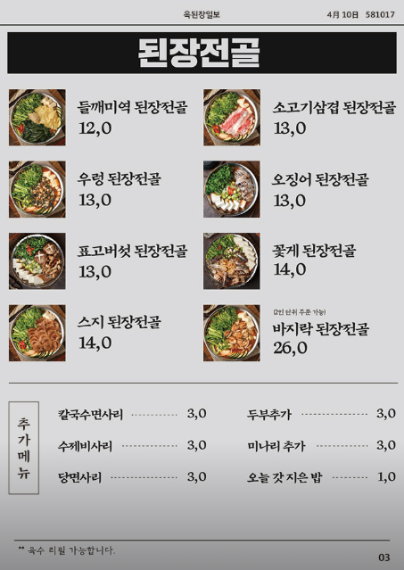이곳은 깊고 구수한 된장 국물에 신선한 재료를 듬뿍 넣어