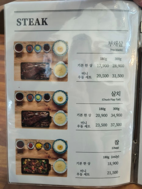 스테이크 메뉴는 기본 180G이고 300G까지