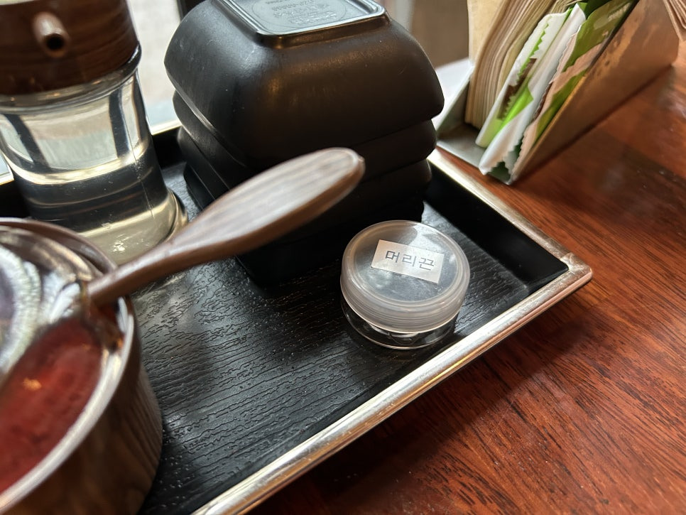 기본 세팅되어 있는 것은 식초 간장 고춧가루 머리끈입니다