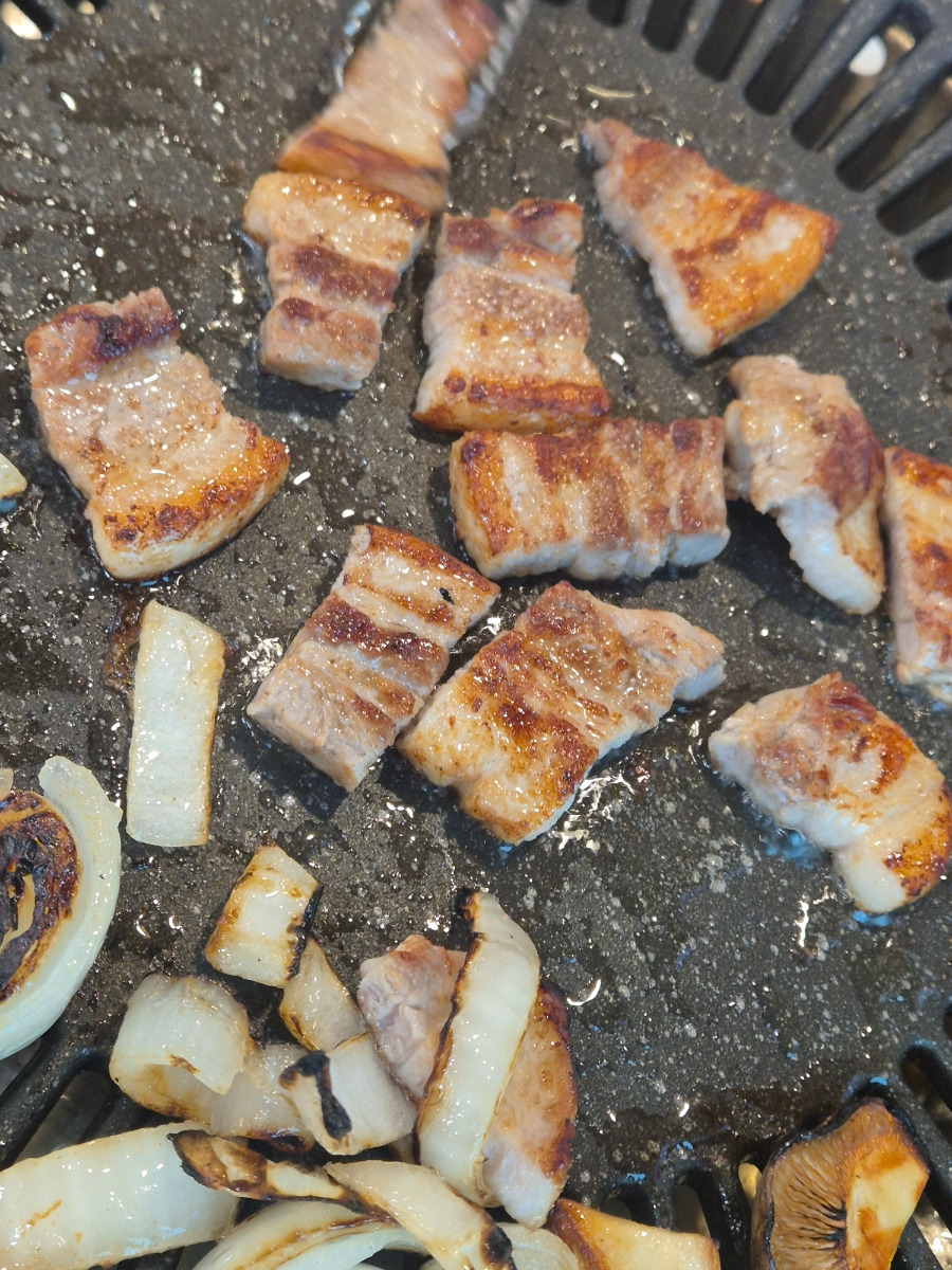 차돌박이는 안타게 살짝만 취익취익 구워서 먹어주고
