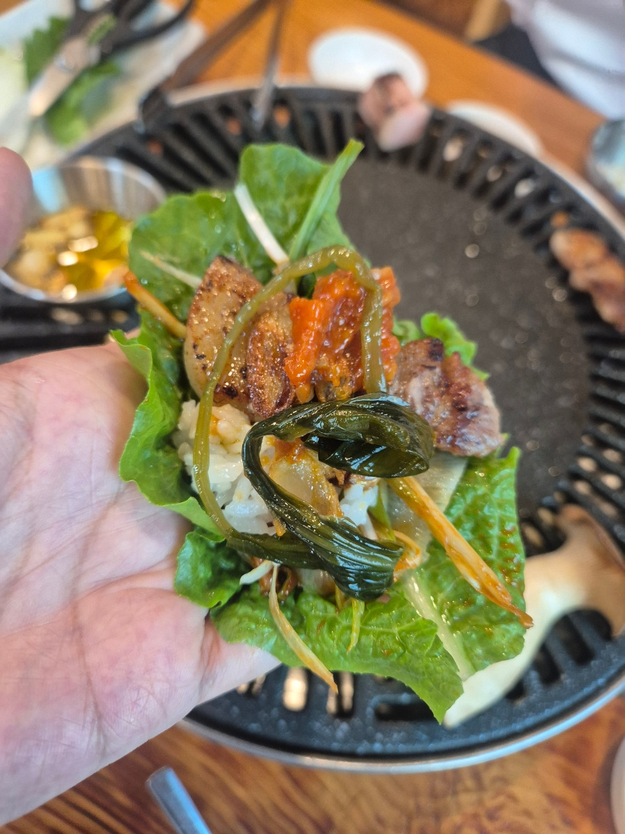 파채와 명이나물, 쌈무까지 야무지게 넣어가지고